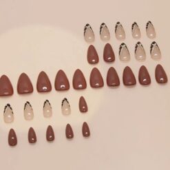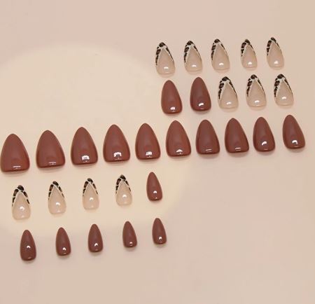 Achieve a flawless manicure effortlessly with the Niki Beauty Brown-Leopard Print Tip Almond Shaped Press On Nail Kit. This set of 20 almond-shaped nails features a beautiful brown base and a chic leopard print tip, offering a salon-worthy look without the fuss. Simply press on and go!